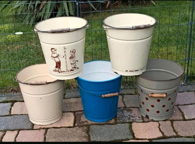 5x alte Emaile - Eimer / 10 Liter Eimer / emailierte Eimer / Deko