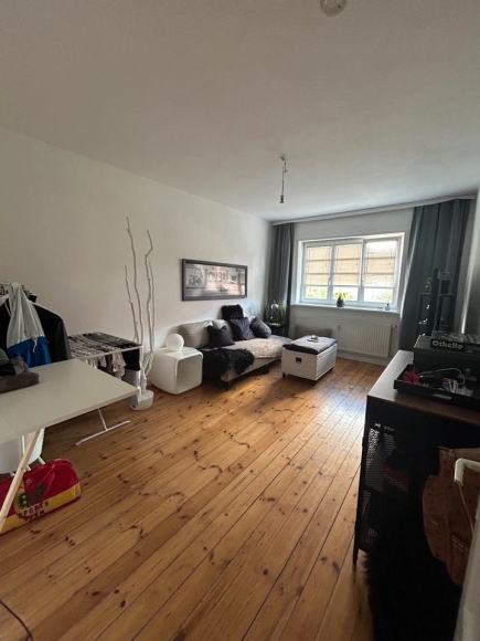 Dein Zimmer: Das freie Zimmer ist gleich groß wie mein Zimmer und angenehm hell. Es ist derzeit möbliert (gerade mein Wohnzimmer) wird aber dann unmöbliert sein, sodass du es ganz nach deinem Geschmack einrichten kannst. (Ein paar Möbel könnten ggf. nach Absprache übernommen werden. – da findet sich sicher eine Lösung, falls nötig.) Durch den praktischen Schnitt der Wohnung haben wir beide ungefähr gleich viel Platz. Dein Zimmer liegt ruhig und bietet genügend Raum für Bett, Schrank, Schreibtisch und was du sonst noch brauchst. Direkten Zugang zum Balkon hast du zwar nicht (der Balkon geht von der Wohnküche ab), aber den können wir natürlich gemeinsam nutzen.