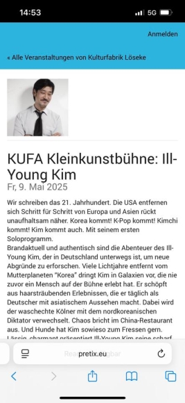 Zwei Tickets abzugeben für die Show „Kim kommt“ von lll-Young Kim am 09.05. um 20 Uhr in der KuFa Hildesheim.