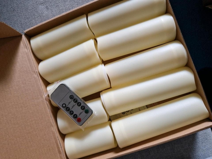 10x LED Stumpenkerze Wasserfest mit AA-Batterien Creme Hochzeit