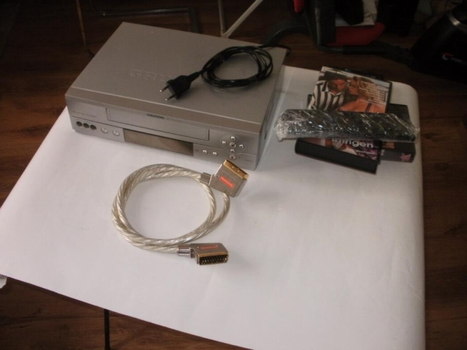habe noch ein Marken VHS Video Recorder von Grundig, Model Vivance 43 mit FB + Scartkabel, Funktiniert gut mit 6 Head - Kopf Hifi Stereo Technik, hat MTSC + Chinch + 2x Scart Ausgang + Antennen Eingang + Audio Video Eingang.