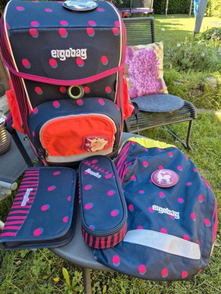 sehr gut erhaltener Ergobag. Er wurde gereinigt und daher erhaltet ihr für einen Festpreis von 50€ einen guten voll funktionstüchtigen sauberen Schulranzen. Sämtliches Zubehör (Federmappe, Schlamper, Turnbeutel, Seitentaschen Zip Set) im Preis enthalten. Seitentaschen sind neonpink. Abholung OS-Wüste.