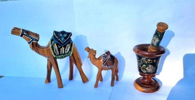 Kamele / Dromedar und Mörser aus Olivenholz handgearbeitet