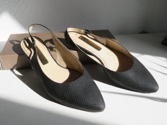Schwarze Tamaris Slingback Ballerinas in Größe 39. Matte Snake / Kroko-Prägung.