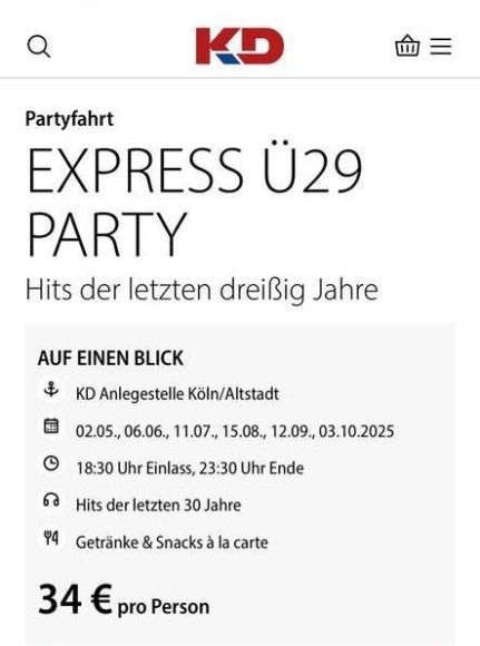 Ich verkaufe 3 Karten fürs KD Schiff am 11.07.2025 für die EXPRESS Ü29 PARTY.