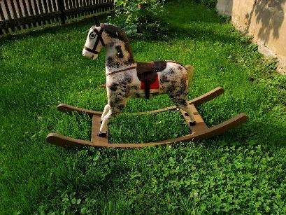 Sehr altes Schaukelpferd mit altersentsprechenden Gebrauchsspuren - nicht restauriert. Siehe Fotos.