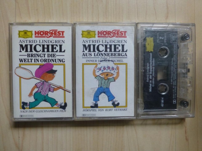 Ich biete die beiden folgenden Grammophon Hörfest Kassetten mit Geschichten von „Michel auus Lönneberga“ zum Kauf an: