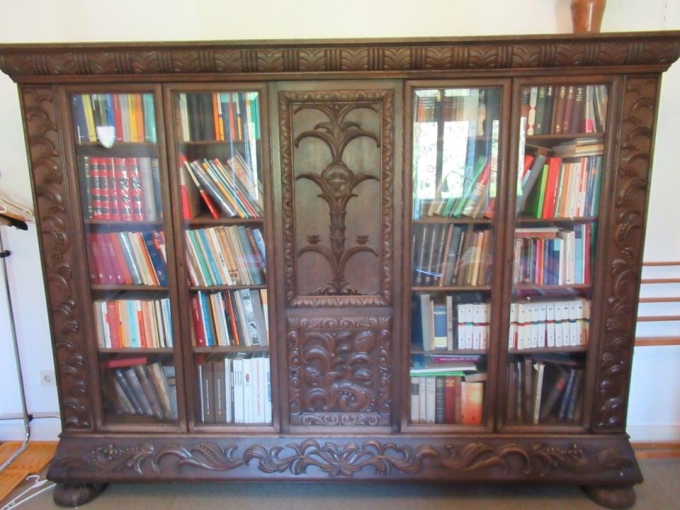 Antiker Bücherschrank aus Eiche, aufwändige Schnitzereien, guter Zustand, circa 1910, 253 (B)*190(H)*39(T)