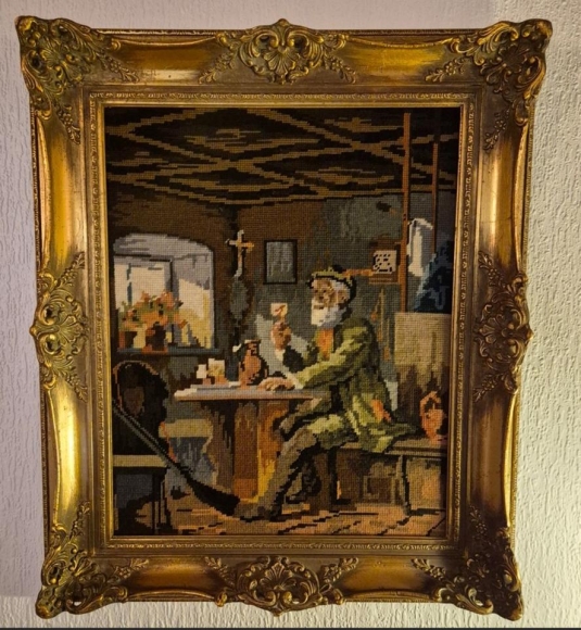 Gobelin Bild im alten antiken Rahmen goldfarben