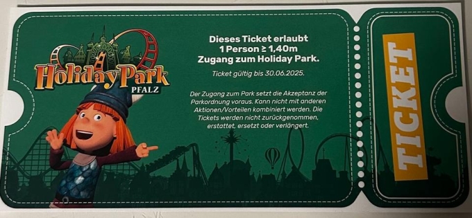 Ich biete einen Holiday Park Gutschein an, der für den Eintritt in den beliebten Freizeitpark in Haßloch (Rheinland-Pfalz) genutzt werden kann.