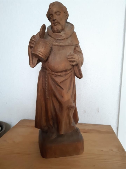 Er ist aus edlem Holz geschnitzt und hat eine Höhe von ca. 45 cm.