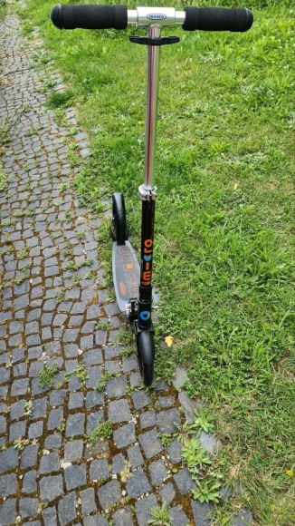 Micro scooter classic Black SA0034, für Jugendliche und Erwachsene. Trittbrettmaße 33 x 12mm. Belastbarkeit max. 100 kg. Lenkerhöhe einstellbar zwischen 73-103 cm. Extragroße 200 mm Räder sorgen für angenehmes und schnelles Fahren. 4.95 kg schwer. Zusammenklappbar und leicht zu bedienen. Klappbarer Ständer. Das tiefliegende Trittbrett bietet zusätzlichen Komfort und eine ergonomische Haltung beim Fahren. Nutzbar auch für Erwachsene zum täglichen Pendeln zur Arbeit oder als schnelles Transportmittel durch die Stadt. Einmalig benutzt. Leichte Gebrauchspuren und oberflächliche Kratzer im.Lack s. Bilder.