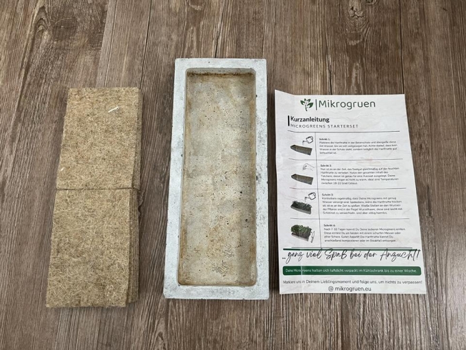 Mikrogruen Betonschale für Microgreens, Maße: 24,3 x 9,8 x 3,1 cm, mit 5 Hanfmatten, zwei Mal benutzt, sehr guter Zustand