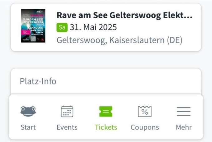 Ich biete ein Ticket für Rave am see heute am gelterswoog.
