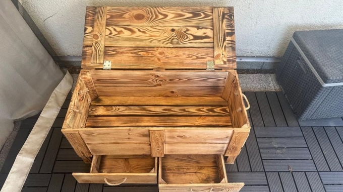 Biete diese Holztruhe mit 2 Schubladen. Die Truhe ist gebraucht und hat folgende Maße
