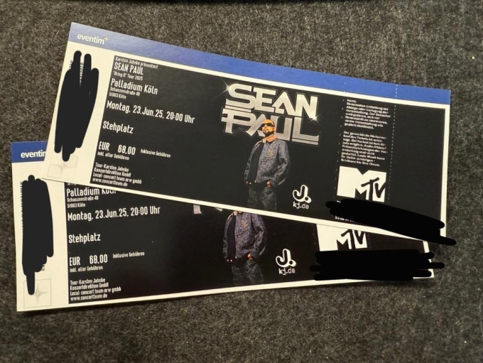 Hallo, wir verkaufen 2 Sean Paul Tickets für den 23.06.2025 in Köln im Palladium.