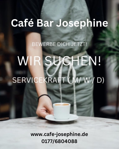 Schicke uns deine Bewerbung per Anruf 0177/6804088 oder melde dich direkt bei uns in der Café Bar Josephine.