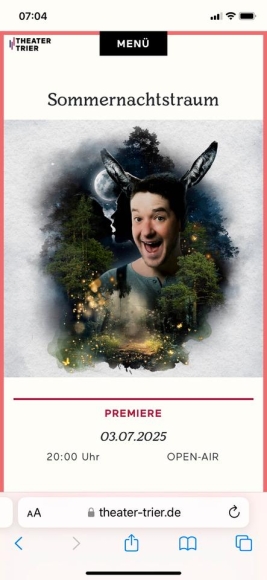 Sommernachtstraum Theaterkarten für die Premiere. Am 3.7.25