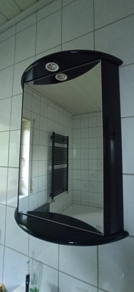 Hallo verschenke einen schwarzen Spiegelschrank. Nicht neu, aber in Ordnung. ! Mit Gebrauchsspuren! Licht, SPIEGEL sowie das Glas