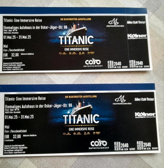 Verkaufe 2 Eintrittskarten für die Titanic Ausstellung in Köln.