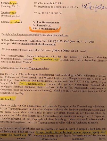 25.+26.10.2025 habe ich ein Seminar zur Künstlichen Intelligenz gebucht, ich kann nun aus privaten Gründen nicht teilnehmen kann.
