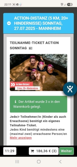 Aus terminlichen Gründen müssen wir leider unsere Xletix Kids Karten für Mannheim am 27.07.25 verkaufen.