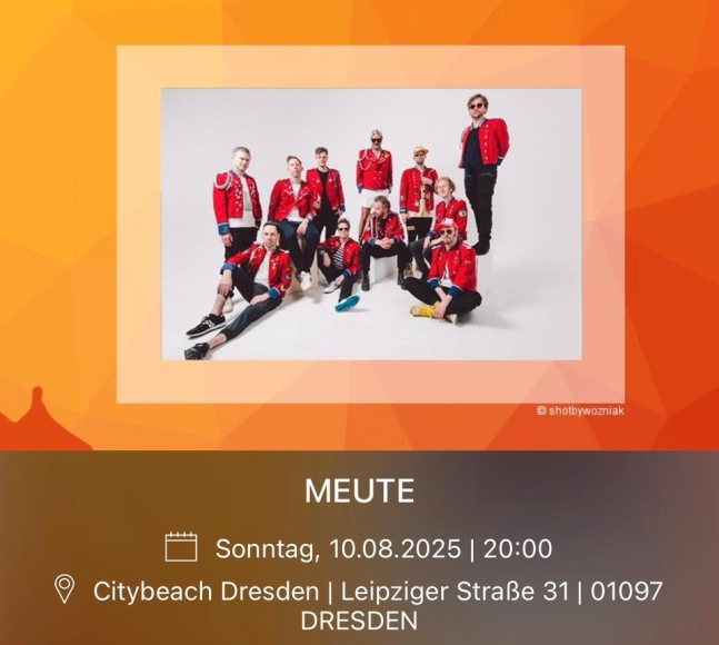 Ticket für das MEUTE Konzert in Dresden / City Beach am 10.8.2025 um 20 Uhr abzugeben.