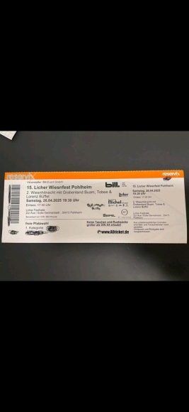 Eine Ticket für das Wiesenfest in Pohlheim 26.04.2025 zu verkaufen.