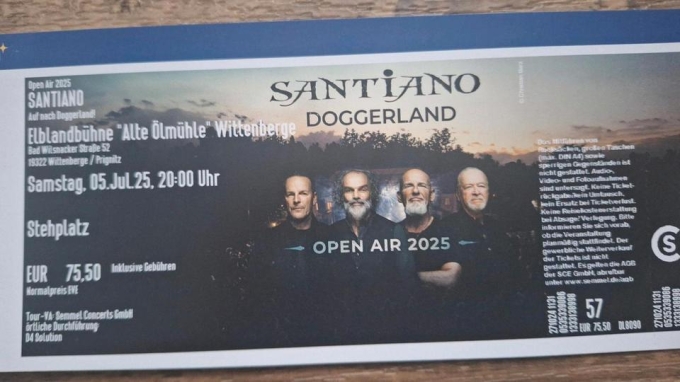 Hallo, ich biete eine Karte für Santiano Doggerland in der Alten Ölmühle in Wittenberge am 15.07.25 an.