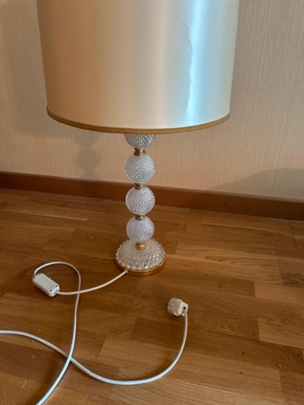 Wir bieten zwei elegante Vintage-Stehlampen aus den 60er/70er Jahren im ikonischen Mid-Century-Stil an. Jede Lampe verfügt über einen stabilen Fuß mit drei strukturierten Glaskugeln und goldfarbenen Metallelementen. Der große, cremefarbene Lampenschirm sorgt für ein warmes, diffuses Licht und verleiht jedem Raum eine stilvolle Atmosphäre.