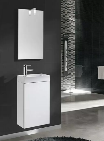 1 x Waschtischunterschrank, 1 x Waschtisch, 1 x Lichtspiegel