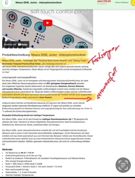 Idealer Luftentfeuchter für den Dauerbetrieb auf einem Boot oder Wohnmobil. Sollte der Strom ausfallen, bleibt er im gewählten Status und nimmt seine Arbeit wieder auf, wenn der Strom eingeschaltet wird.