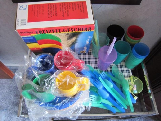 Freizeit-Geschirr aus Kunststoff, 54 Teile, neu und unbenutzt