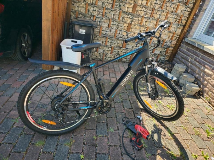 Aus zeitlichen Gründen verkaufe ich mein 4 Jahre altes 27.5" E-Bike der Marke Eskute! Es hat noch nicht viele Km runter (ca. 500km) und wurde von mir mit einem Gelsattel, Sportgriffen und Schutzblechen ausgestattet. Es besitzt eine 7 Gang Shimano Speed Schaltung, Zoom Forgo Federung und 6 Unterstützungsstufen (0-5) sowie einen Hinterradmotor. Dadurch lässt es sich auch ohne Akku leicht fahren. Es eignet sich optimal für Trecking-Touren, ist aber auch im leichten Gelände gut zu handhaben, durch das relativ leichte Gewicht. Bremsen und Kette sind einwandfrei!