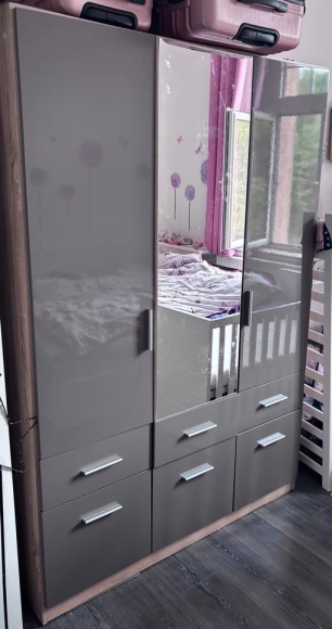 Angeboten wird dieser schicke Kleiderschrank in Grau.