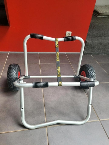 Zum Verkauf steht ein Kanuwagen von Eckla mit Stütze. Er ist kaum genutzt worden und deshalb gut erhalten. Die Räder sind abnehmbar und das Gestell lässt sich zusammenklappen und nimmt so sehr wenig Stauraum in Anspruch. Die Bereifung ist vor ein paar Jahren erneuert worden.
