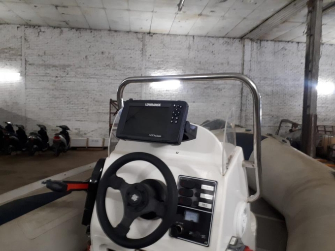 Die Lampen am Geräteträger sind nicht angeschlossen, das Boot hat einen Luftkiel, kommt sehr schnell ins Gleiten und erreicht ca 20km/h.