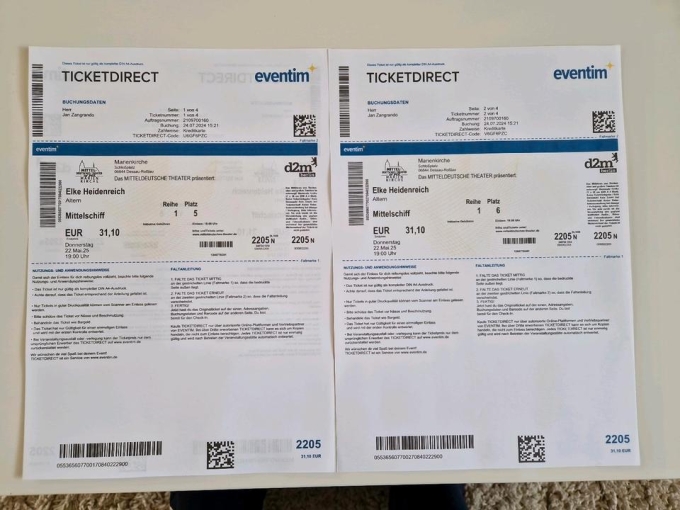 Da 2 Personen krank geworden sind, würde ich gern diese 2 Tickets verkaufen