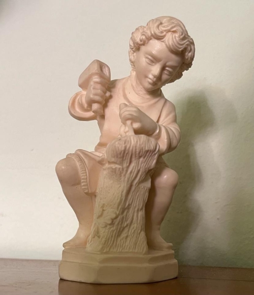 Büste Michelangelo jung Alabaster, signiert G. R. (Ruggeri), 11cm