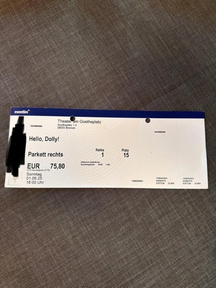 Fünf Super Karten für Hello Dolly in Bremen im Theater am Goetheplatz am 01.06.25! Die Karten können auch einzeln gekauft werden. SITZPLÄTZE SIND IM PARKETT REIHE 1 PLATZ 15-19.