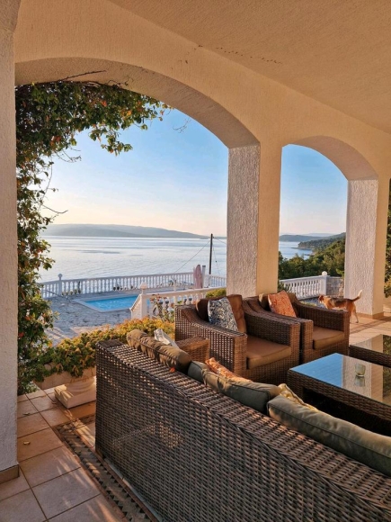 Ferien in der Villa mit eigenem großen beleuchtetem und beheiztem Pool und einladender weiten Sonnenterrasse, mit nur wenigen Schritten direkt zum Meer.