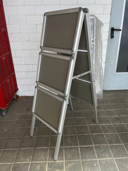 Hochwertiger Doppelseitiger Werbeaufsteller - NEU - mit insgesamt 6 Werbeflächen. Die Flächen sind mit Folie geschützt.