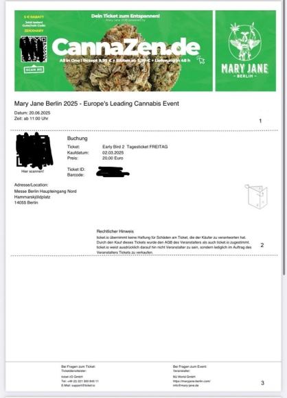 Ich verkaufe 2x Tagestickets für die Mary Jane Messe in Berlin am 20.06.2025.