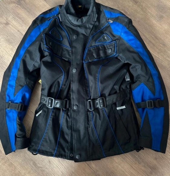 Textil Motorrad-/Rollerjacke von roleff in Größe M (etwas länger geschnitten) in gebrauchtem, gutem Zustand. Rucken, Schulter und Ellenbogenpolster vorhanden. Herausnehmbares Thermofutter.