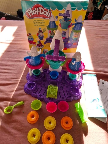 Tolle Eismaschine, Eisschloß mit vielen Spielmöglichkeiten. Sie ist trotzdem in sehr gutem Zustand. Gibt noch extra dazu mit Play Doh Knete