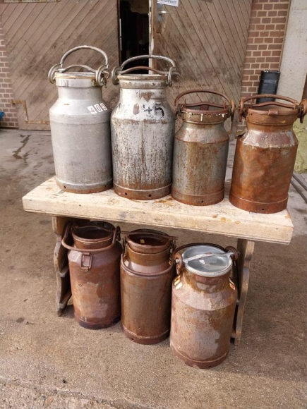 7 Milchkannen inkl. Milchbank