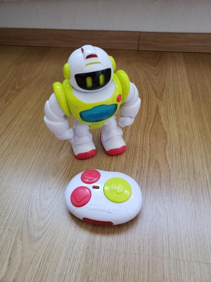 Mein erster Roboter mit Fernbedienung: Er läuft, der obere Teil dreht sich um 360°, hat Licht- und Soundeffekte und nimmt die Sätze des Kindes auf und wiederholt sie. Empfohlen für Kinder im Alter von 2-3 Jahren. Kaum gespielt, top Zustand. NP:39.99€