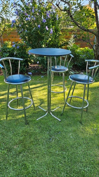 schönes leichtes Set in edlem Chrome/Schwarz für gesellige Stunden Drinnen oder Draußen, wenig benutzt, d.h. nur leichte Gebrauchsspuren