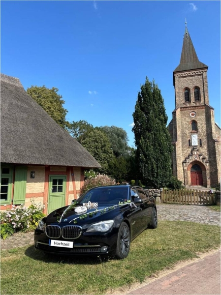Wir bieten euch von der Abholung an der Haustür, über die Fahrt zum Standesamt und zum Fotoshooting, bis zur Anreise zu eurer Eventlocation den vollen Service. Der BMW 750 Li bietet als Langversion ausreichend Platz und Komfort für das Brautpaar.