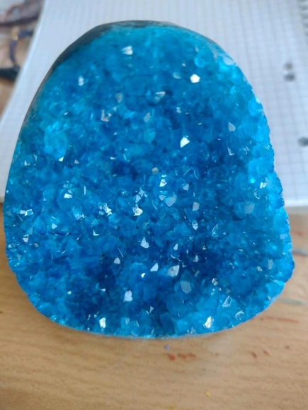 blauer Kristall mit Aura 7 cm auf 7 cm